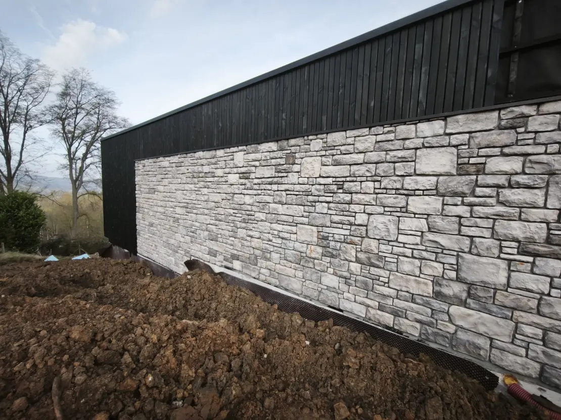 Isolation de façade avec panneaux EPS et pierre reconstituée